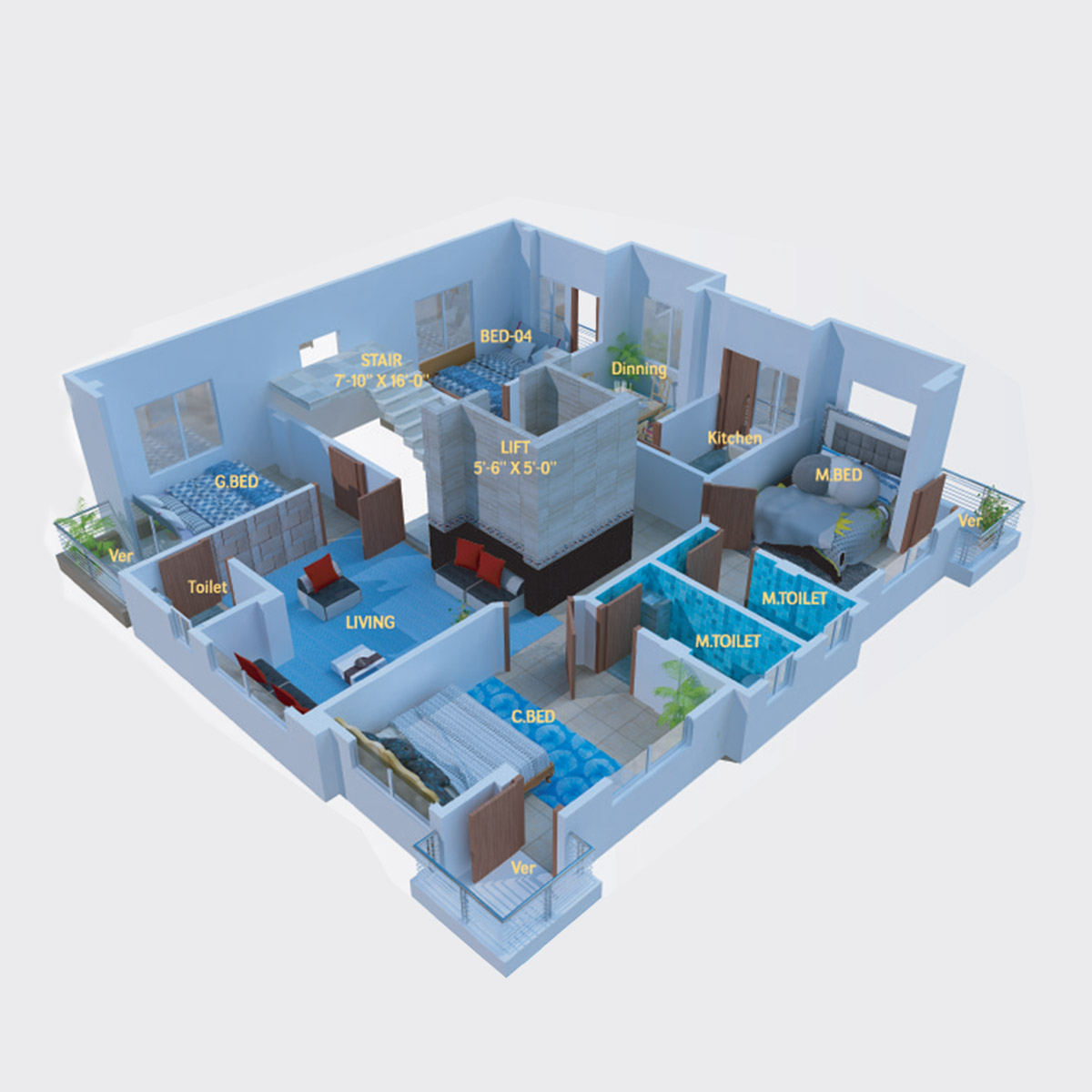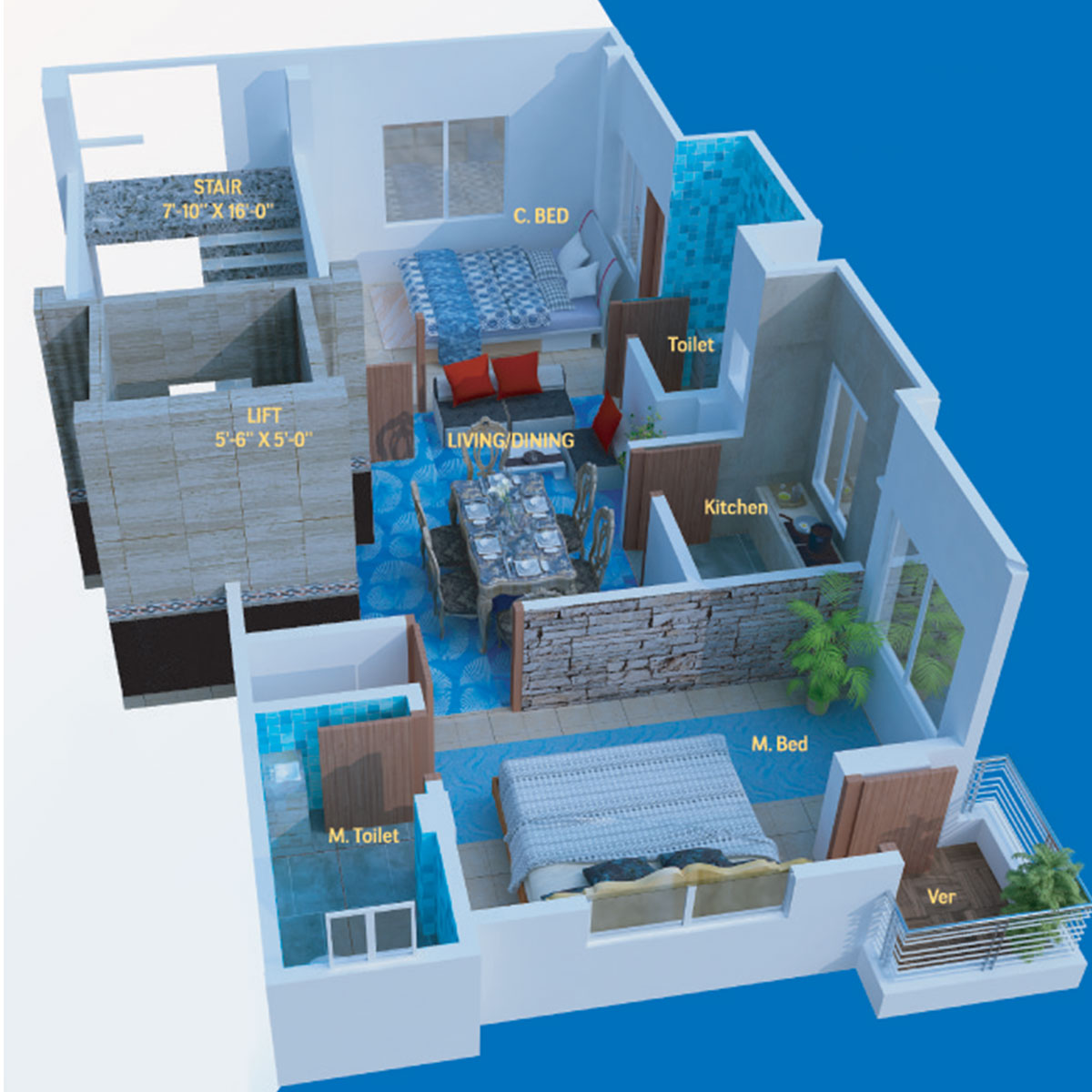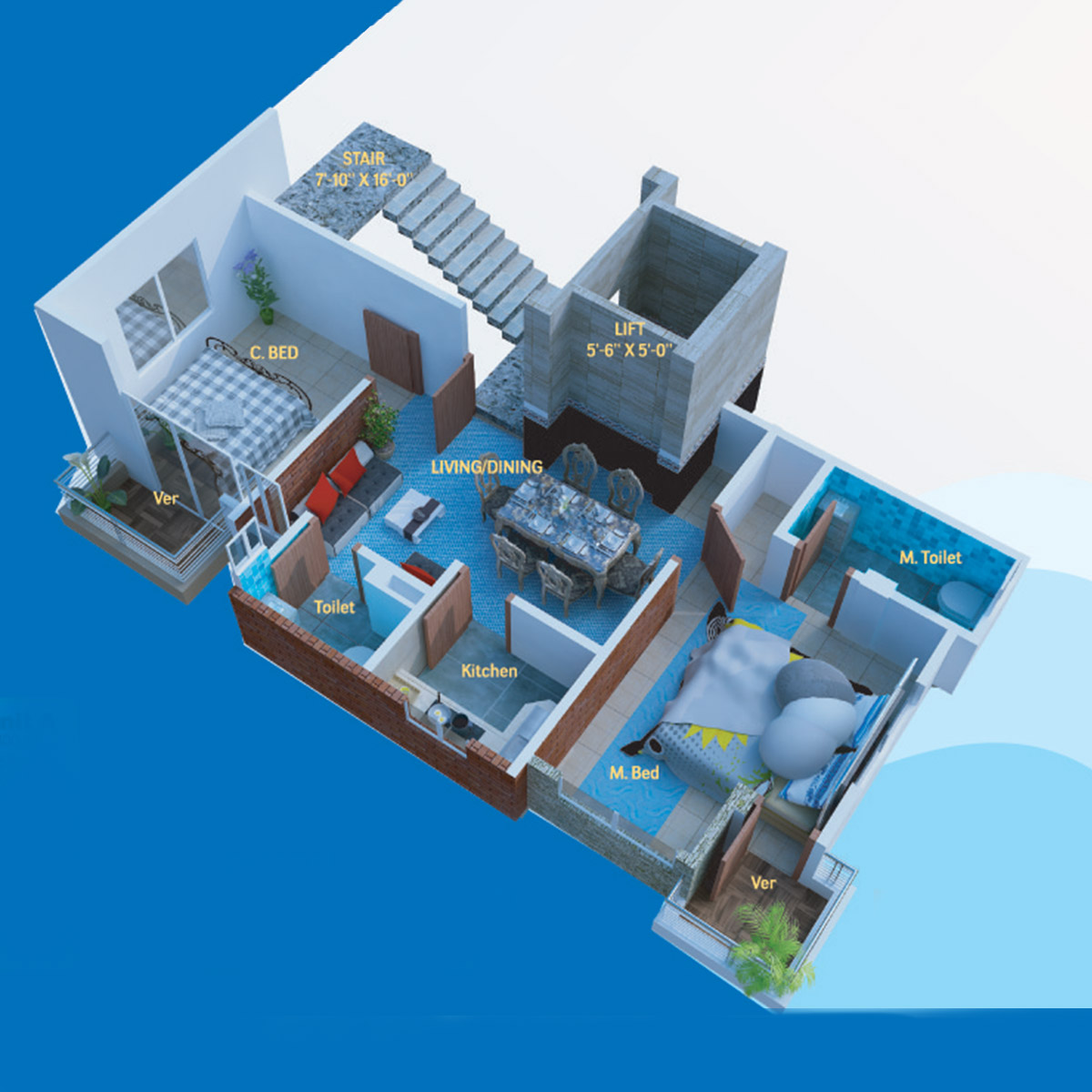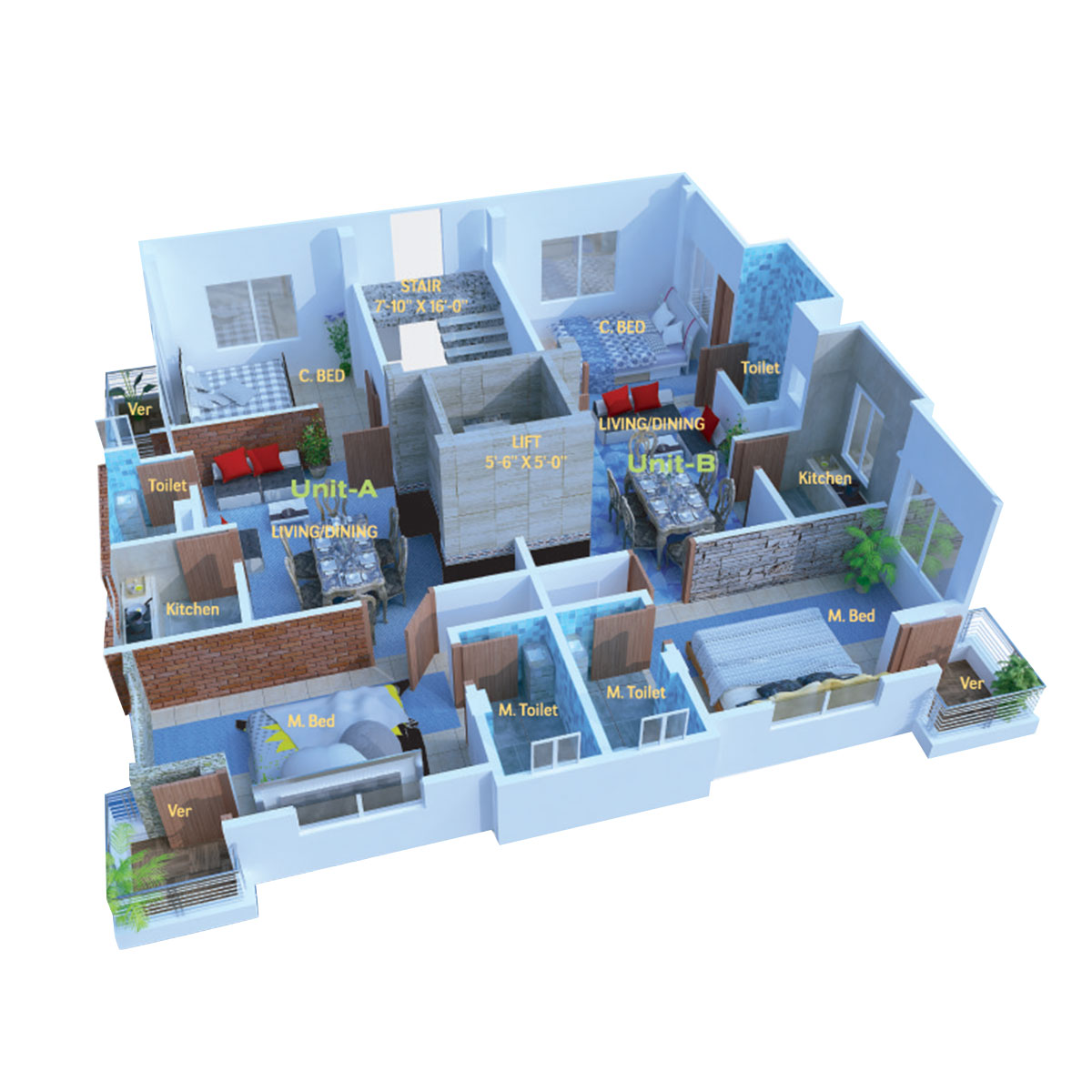 Flat (Single Unit)-1600 sft, Flat-A-800 sft, Flat-B-800 sft