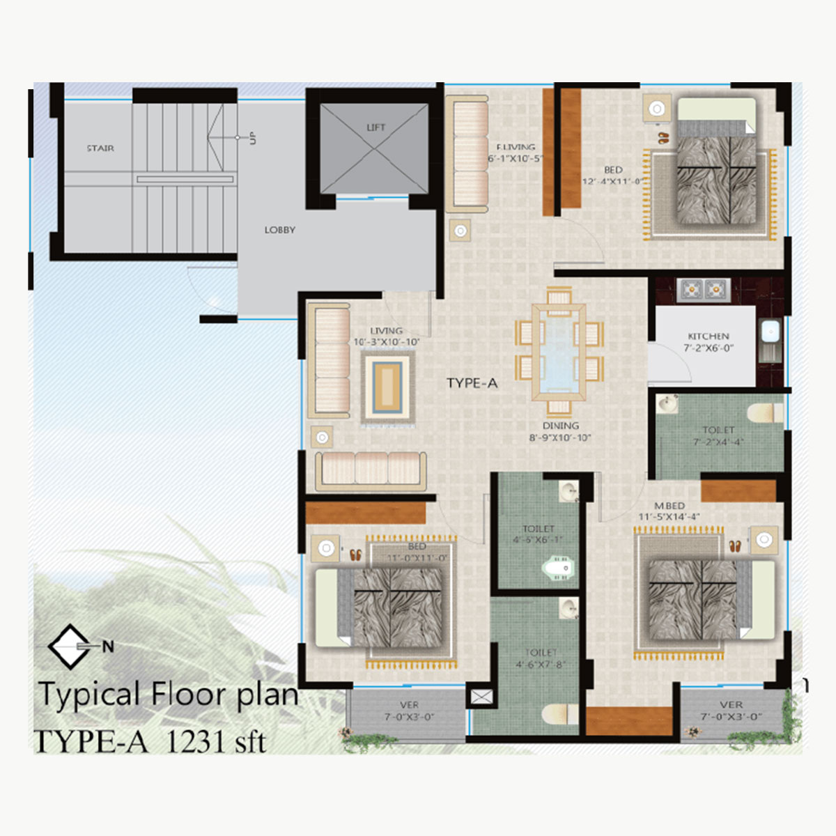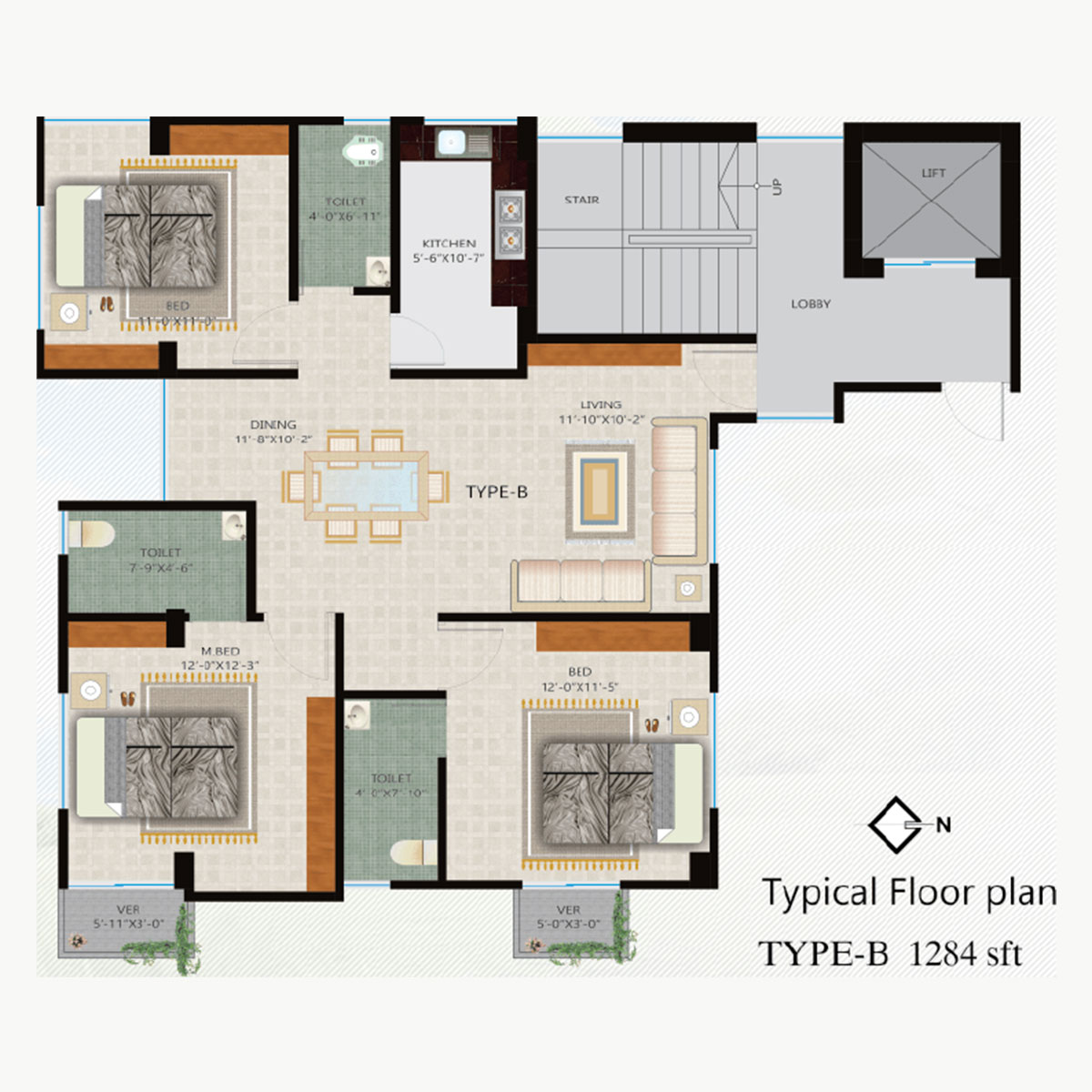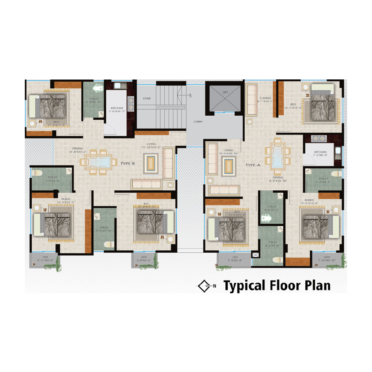 Flat-A-1294 sft, Flat-B-1342 sft